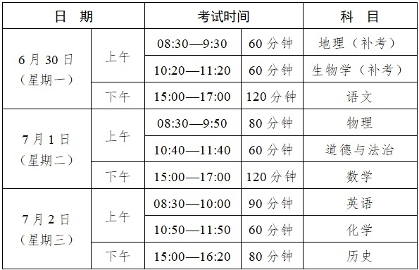 6月30日到7月2日(中考期间)